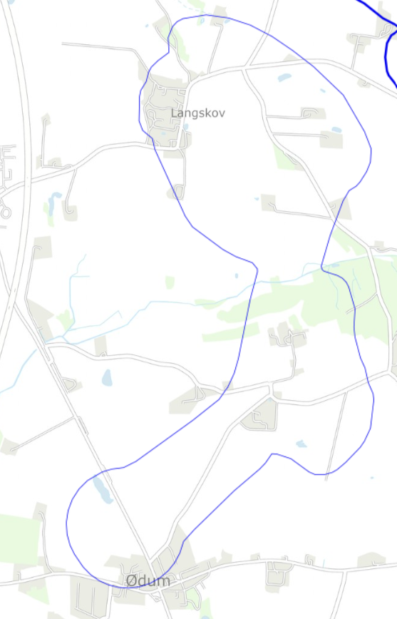 Ødum Vandværks indvindingsområde strækker sig i et bælte fra Langskov ned mod boringerne lige nord for Ødum